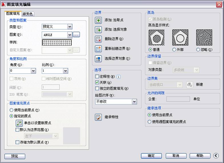 | 8.2 编辑图案 8.2.1 利用对话框编辑图案 命令:PEDIT 单击“修改II”工具栏上的 选择关联填充对象: 在该提示下选择已有的填充图案,AutoCAD弹出如后面的图所示的“图案填充编辑”对话框。 ![]() 对话框中只有以正常颜色显示的选项用户才可以操作。该对话框中各选项的含义与“图案填充和渐变色”对话框中各对应项的含义相同。利用此对话框,用户就可以对已填充的图案进行诸如更改填充图案、填充比例、旋转角度等操作。 8.2.2 利用夹点功能编辑填充图案 利用夹点功能也可以编辑填充的图案。当填充的图案是关联填充时,通过夹点功能改变填充边界后,AutoCAD会根据边界的新位置重新生成填充图案。具体操作见教材示例。 8.3 本章小结 本章介绍了AutoCAD 2011的填充图案功能。当需要填充图案时,首先应该有对应的填充边界。可以看出,即使填充边界没有完全封闭,AutoCAD也会将位于间隙设置内的非封闭边界看成封闭边界给予填充。此外,用户还可以方便地修改已填充的图案,根据已有图案及其设置填充其他区域(即继承特性)。 |