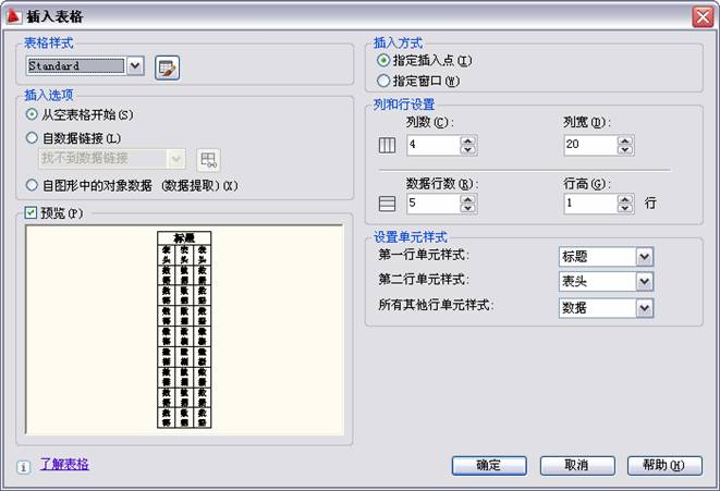 | 9.3 编辑文字 命令:DDEDIT 单击“文字”工具栏上的 选择注释对象或 [放弃(U)]: 此时应选择需要编辑的文字。标注文字时使用的标注方法不同,选择文字后AutoCAD给出的响应也不相同。如果所选择的文字是用DTEXT命令标注的,选择文字对象后,AutoCAD会在该文字四周显示出一个方框,此时用户可直接修改对应的文字。 如果在“选择注释对象或 [放弃(U)]:”提示下选择的文字是用MTEXT命令标注的,AutoCAD则会弹出在位文字编辑器,并在该对话框中显示出所选择的文字,供用户编辑、修改。 9.4 注释性文字 AutoCAD 2011可以将文字、尺寸、形位公差、块、属性、引线等指定为注释性对象。 9.4.1 注释性文字样式 用于定义注释性文字样式的命令也是STYLE,其定义过程与9.1节介绍的文字样式定义过程类似。执行STYLE命令后,在打开的“文字样式”对话框中,除按在9-1节介绍的过程设置样式后,还应选中“注释性”复选框。选中该复选框后,会在“样式”列表框中的对应样式名前显示图标,表示该样式属于注释性文字样式。 9.4.2 标注注释性文字 用DTEXT或MTEXT命令标注文字时,只要将对应的注释性文字样式设为当前样式 ,或选择标注注释性文字,然后按前面介绍的方法标注即可。 9.5 创建表格 9.5.1 创建表格 单击“绘图”工具栏上的 ![]() 此对话框用于选择表格样式,设置表格的有关参数。其中,“表格样式”选项用于选择所使用的表格样式。“插入选项”选项组用于确定如何为表格填写数据。预览框用于预览表格的样式。“插入方式”选项组设置将表格插入到图形时的插入方式。“列和行设置”选项组则用于设置表格中的行数、列数以及行高和列宽。 “设置单元样式”选项组分别设置第一行、第二行和其他行的单元样式。 通过“插入表格”对话框确定表格数据后,单击“确定”按钮,而后根据提示确定表格的位置,即可将表格插入到图形,且插入后AutoCAD弹出“文字格式”工具栏,并将表格中的第一个单元格醒目显示,此时就可以向表格输入文字,如下面的图所示。 ![]() |