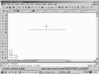 图13 调整适当的比例因子 8.问题8 表现:光标不能指向需要的地方。 分析:很多情况下,使用者都会先考虑是不是鼠标不灵活,或者鼠标坏了。事实上,如果排除了鼠标的毛病,很可能是使用者打开状态栏上的“捕捉模式”。如果是的话,你会发现十字光标是在规则地跳动,沿着栅格点,在使用者移动鼠标时,根据捕捉模式步距的不同,作幅度大小不等的跳动。恰巧状态栏的“栅格显示”又处于关闭状态,使这种跳动很容易被误以为是鼠标不灵,使十字光标移动不畅。而如果鼠标不灵活的话,十字光标的移动状态是不规则的,要避免这种错觉,可以打开状态栏的“栅格显示”,当看到十字光标在栅格点上跳动时,原因就很明显了。 解决方法:检查状态栏,看“捕捉模式”是否处于打开状态,如果是,则再次点击“捕捉模式”按钮,切换成关闭。 9.问题9 表现:某些工具栏丢失,并且有别于工具栏关闭,因为在其他的工具栏上点击鼠标右键,会发现“丢失”的工具栏实际处于选中状态,并未关闭。