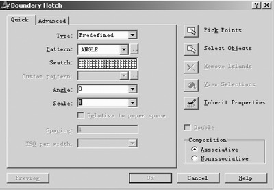 图12 填充边界不封闭 解决方法:对于第一个原因,在“图案填充”对话框的“比例”中调整适当的比例因子即可,如图13所示。对于第二种原因,只要重新看一下图形的封闭性就可以了。