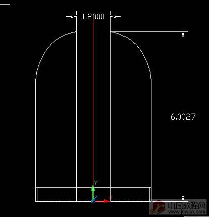 如图转变坐标轴(UCS),利用二维线,弧命令,画出如图线型(其中找准中心线(红色))!