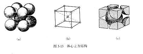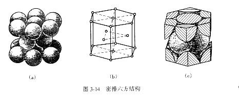 3.4 典型金属的晶体结构(1) 金属晶体中的结合键是金属键,由于金属键没有方向性和饱和性,使大多数金属都具有排列紧密、对称性高的简单晶体结构。最常见的金属晶体结构由3种,它们是面心立方结构(Face-centered cubic)、体心立方结构(Body-centered cubic)和密排六方结构(Hexagonal close-packed)。若将金属原子看作刚性球,这三种晶体结构的晶胞和晶体学特点分别如图3-12、3-13、3-14。