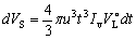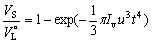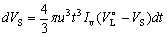 又假设形成新相为半径相等的球状颗粒,半径为r,其生长速率u(即单位时间内球形半径的增长)为常数,不随时间而变化。那么在dt时间内,生成新相的速率dVS等于在dt时间内Nt与一个新相颗粒体积VP的乘积,即: