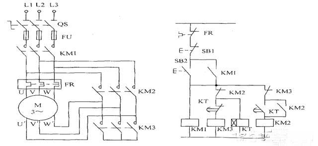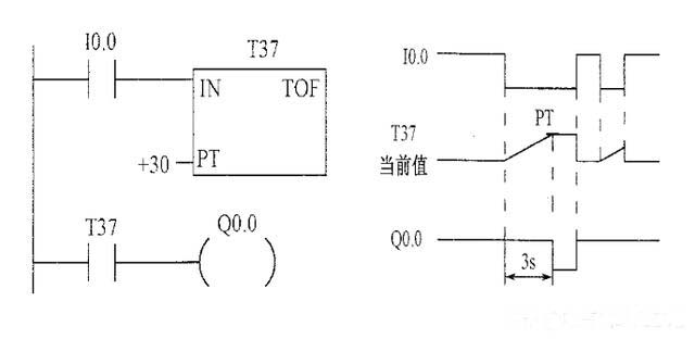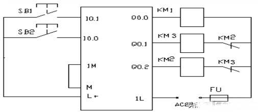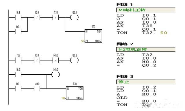 | 快速学习西门子PLC编程 (2) 例2: 图2.1为两台电动机顺序起动逆序停止的控制电路图。 由上述控制要求可确定PLC需要3个输入点,2个输出点,其I/0地址分配如下: I0.0:紧急停止按钮SB1 I0.1:起动按钮SB2 I0.2:停止按钮SB3 Q0.0:电动机M1运行用交流接触器KM1 Q0.1:电动机M2运行用交流接触器KM2 根据I/0地址分配及控制时序图可知,当起动按钮SB2被按下时,输入继电器I0.1接通,输出继电器Q0.0置1,交流接触器KMl线圈得电并自保,这时第一台电动机M1运行,5s之后输出继电器Q0.1置1,第二台电动机M2。 图3.1为三相异步电动机Y-△减压起动的原理图。KMl为电源接触器。KM2为△联结接触器,KM3为Y联结接触器,KT为起动时间继电器。其工作原理是:起动时合上电源开关QS,按起动按钮SB2,则KMl、KM3和KT同时吸合并自锁,这时电动机接成Y联结起动。 ![]() ![]() ![]() |