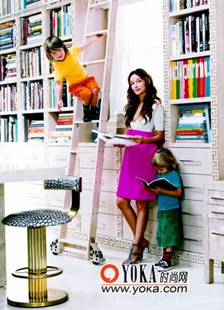 顶级设计大师的家装逆向建议(3)![]() 韦斯勒和她的两个“小助手”在私人图书馆中看书。 小礼服裙 Calvin Klein Collection、高跟鞋 Manolo Blahnik for Carolina Herrera 逆向建议三:成套的洗手间 当我们已经学会在卧室、书房里混搭家具和饰品,知道怎么搭配颜色、质地甚至风格,为什么却还在洗手间摆着同一品牌同一系列的产品,无论它再奢华高档,你也很难看到属于主人的创意。如果用一个前卫的马赛克浴缸搭配一个描绘着中国水墨丹青的洗手台,或其他形式的大胆混搭,你会非常骄傲于自己的创意,而且和混搭一个多功能的起居室相比,这不仅最容易,而且效果也最惊人。 逆向建议四:坚持同色系 人们在颜色的选用上总是不能很大胆,这一点甚至超过了在结构和风格上的禁锢,浅绿色的墙纸会去搭配有绿色图案的窗帘,人们喜欢把色调、色系挂在嘴边,他们会说我要一个鹅黄色调的婴儿房,这实在太乏味了,完全没有艺术感,我倒建议去尝试搭配两种完全不相干的色彩,比如柔和的灰色和明亮的紫色、浅绿色和紫红色。 韦斯勒艺术化的生活空间