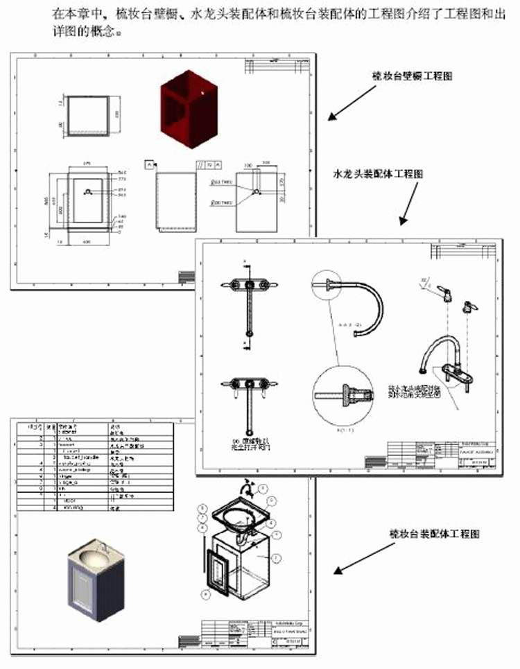 工程图是用于表现制造设计的2D文件。在本章中将建立三张工程图纸,其中涉及以下主题:
