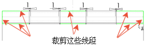 使用剪裁实体 工具剪裁每一端的三条线段及中间的两条线段,留下两个封闭的矩形。