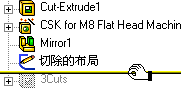 拖动退回控制棒至切除布局草图的下面,使设计退回到三处切除特征。