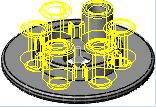 使用圆周阵列工具生成六个高圆柱拉伸,带有沿零件中心轴均匀放置的切除和圆角。