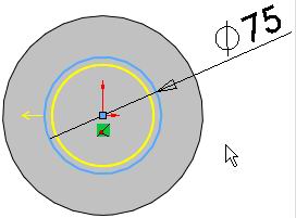所绘制的圆代表环的外侧。接下来使用等距实体工具生成环的内侧。