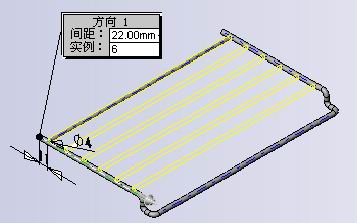 检查拉伸的预览来确定拉伸阵列到外边线,如下图所示。如有必要,单击反向来改变阵列的方向。