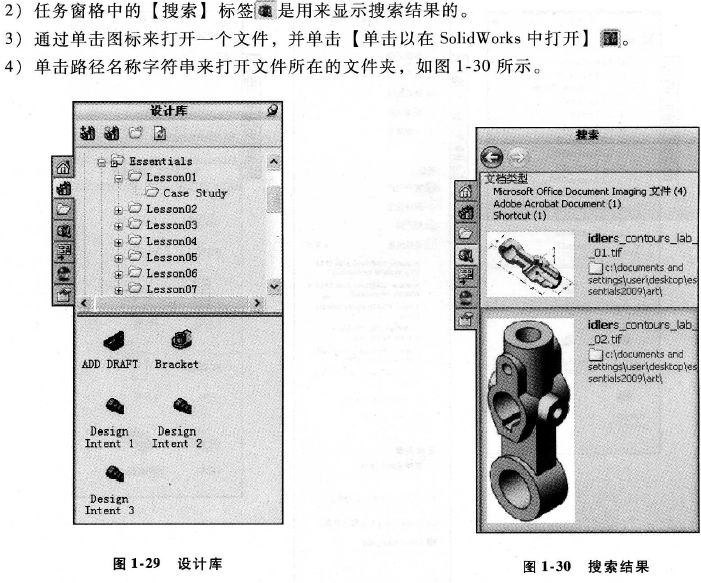 1.5.10 任务窗格![]() 示于右边,不但可以移动、调整大小和打开/关闭,而且还可将其固定于界面右边的默认位置或者 移开。 ![]() 图1-28 任务窗格 1.5.11 使用设计库打开练习文件 我们可以使用设计库来打开练习中的零件和装配体。通过以下步骤,我钔将这些教程所用到的文件添加到设计库中,如图1-29所示。 1)打开【任务窗格】/【设计库】。 2)单击【添加文件位置】 3)进择光盘中的练习文件。 4)单击【确定】。 双击【设计库】中的零件或装配体图标,可以直接将它们打开。 1.5.2 SolidWorks搜索 【SolidWorks搜索】选项允许通过输入零件名称来进行搜索,使用这一功能的前提是必须安装Windows桌面搜索引擎。 1)在【SolidWorks搜索】框中 ![]() 1.5.13 鼠标的应用 在SolidWorks中,鼠标的左键、右键和中键有完全不同的意义。 1.左键 用于选择对象,如几何体、菜单按钮和FeatureManager设计树中的内容。 2.右键 用于激活关联的快捷键菜单。快捷键菜单列表中的内容取决于光标所处的位置,其中也 包含常用的命令菜单。 关联工具栏下面是下拉式菜单,它包含其他前后相关的一些命令,如图1-31所示。 3.中键 用于动态地旋转、平移和缩放零件或装配体,平移工程图。 ![]() 1.5.14 系统反馈 系统反馈由一个连接到带箭头光标的符号来表示,表示用户正在选择什么或系统希望用户选择什 么。当光标通过模型时,与光标相邻的符号就表示系统反馈。如图1-32所示为一系统反馈的符号: 点、边、面和尺寸标注。 |