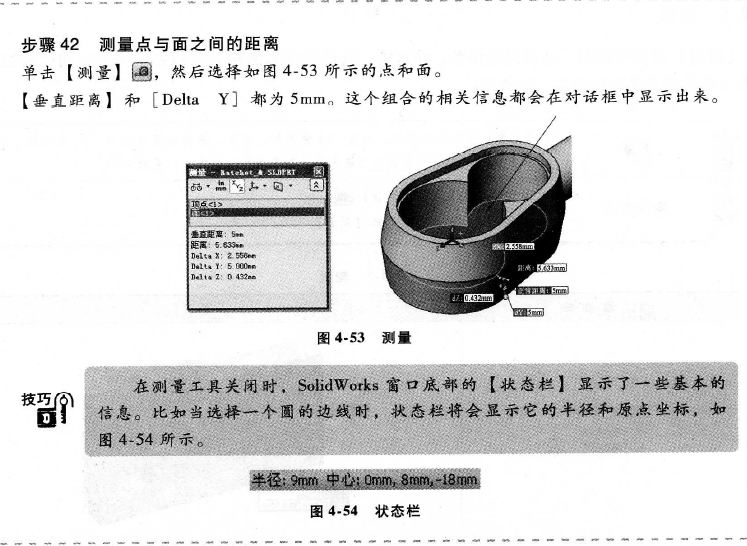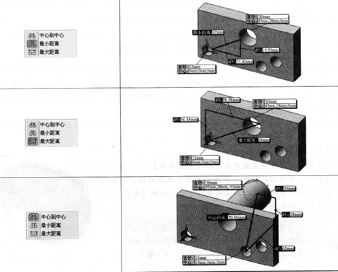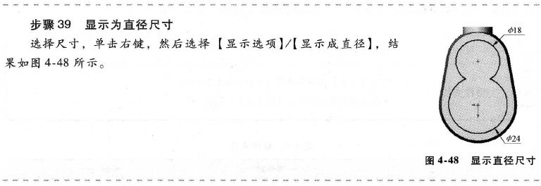 | 4.8.2 修改尺寸 由于草图实体是圆弧,系统会自动创建半径尺寸。如果用户希望标注直径尺寸,可以通过单击右 键,选择【显示选项】/【显示成直径】,快速地进行修改。要修改更多的尺寸属性,可以右键单击尺寸,然后选择【属件】进行修改。 ![]() 4.8.3 到离指定面指定的距离 【到离指定面指定的距离】终止条件是从一个基准面、面或 ![]() 者曲面甚至是特征的草图平面开始测量到一个指定的距离来放 置拉伸的终止位置。 在本例中,拉伸的终止位置是从零件底部的面开始测量的, 如图4-49所示。 4.8.4 转化曲面选项 【到离指定面指定的距离】终止条件的【转化曲面】选项在 默认状况下是关闭的。 如图4-50所示,两个圆柱位于两个相同的半圆形参考曲面 下,两个圆柱都是拉伸到顶部离曲面1.4in的位置。左边的圆柱 在拉伸时【转化曲面】选项被选中,而右边的圆柱则在拉伸时关闭该选项。 在【到离指定面指定的距离】中的【转化曲面】定义为线性的将曲面复制到某个距离作为拉伸的终止条件。如果不使用这个选项,复制的曲面是根据曲面的法向发散开的。因此,会得到两个不同的结果,如图4-51所示。 ![]() ![]() 4.8.5 选择其他 ![]() 选择隐藏或是被遮挡的面可以使用【选择其他】选项。当把鼠标放在要选的面的区域上单击右键时,怏捷菜单上将出现【选择其他】选项,靠近鼠标的面将被隐藏。当鼠标在对话框中的面列表上移动时,相应的面在屏幕上将高亮显示。 靠近鼠标的面在选择其他之前是可见的,如果要选择这个面,可以直接使用左键单击选取。 ![]() 4.8.6 测量 【测量】选项可以用于许多测量任务。 在这里,我们用其来测量一条边和一个面之间的最短距离。它可以测量的几何体包括点、线和面。 ![]() 表4-7 测量 ![]() ![]() ![]() |