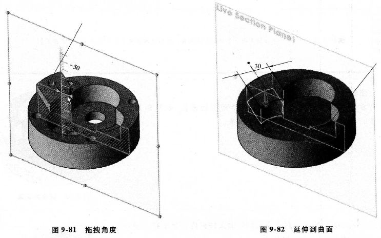 | 9.6 使用Instant 3D编辑零件 使用Instant 3D工具可以准确、快捷地编辑零件几何特征,如图9-68所示。包含拖拽工具和拖拽 中显示的标尺,用以改变尺寸值。工具包括: ●深度测量标尺。 ![]() ●数值的一键更改 9.6.1 Instant 3D手柄 这个工具基于【Instant 3D】 ![]() 9.6.2 标尺 拖拽球形手柄调节标尺,设定效值,如图9-70所示。移动时,使光标靠近刻度,可以自动捕捉整数刻度;使光标远离标尺,则不捕捉刻度。 9.6.3 拖拽几何体表面 当面被选中时,用户可用相应的工具编辑此面所在的特征。 ![]() 1.面的法向 在Instant 3D摸型环境下选中面,面的法向将会显示出来,如图9-71所示。在某些 零件中,选中的面可以重新设置其位置。 将面向拉伸特征的反向拖动,可以改变特征的性质。原来的特征可由拉仲r、台变为拉仲切除.反 之亦然。特征的改变决定于拖拽的方向和距离。 ![]() 2.拖拽到面或顶点 可以通过现有的面、顶点位置设定拖动的尺寸(更多信息,参考9.6.5拖拽深度)。 3.移动特征 可以通过显示在所选面上的2重坐标轴移动桕应的特征。为了移动特征,可以删除其内部包含的 约束关系。 9.6.4 一键更改 Instant 3D模型允许使用一键更改其数值。单击尺寸文字,便可以直接对它修改,如图9-73所 示。 ![]() ![]() ![]() ![]() 9.6.5 拖拽深度 使用Alt键,拉伸特征的深度可以保持与选定平面、定点一致。 ![]() 9.6.6 活动剖切面 【活动剖切面】用于动态显示模型对于某一平面的剖切情况。截面中可以改变厚度的边界能被选中 并拖动编辑;不能改变的边界,无法编辑,如图9-78所示。 ![]() ![]() ![]() 【活动剖切面】特征保存在活动剖切面文件夹内,显示在Feature-Manager设计树上,如图9-80所示。 它可以在此被显示/隐藏,或压缩。 ![]() ![]() ![]() ![]() 步骤11 孔修复 显示φ10.0(10)Diamete Holel特征下面的Sketch7。双击打开φ8.0(8)Diamete Holel特征下面的Sketch9。将两个点拖放到Sketch7的定点位置,如图9-85所示。 ![]() |