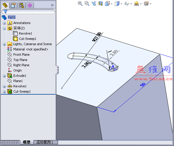 简单凹槽练习题SW08的做法,看看solidworks2008如何实现。
