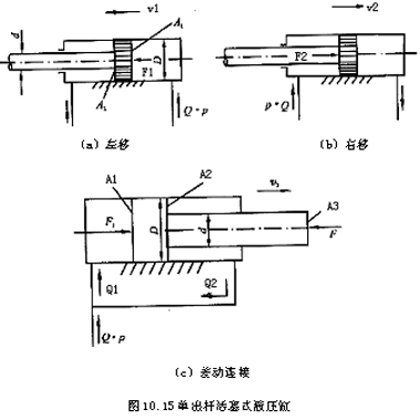 | 2.2 液压缸 液压缸是将液压能转换为机械能的能量转换装置,它是液压系统中的执行元件。液压缸一般用于实现往复直线运动或摆动。 液压缸按结构形式可分为活塞缸、柱塞缸和摆动缸三类。活塞缸和柱塞缸实现往复直线运动,输出推力或拉力和直线运动速度;摆动缸则能实现小于360°的往复摆动,输出角速度(转速)和转矩。 液压缸按油压作用形式可分为单作用式和双作用式液压缸。单作用式液压缸只有一个外接油口输入压力油(图10.13a),液压作用力仅作单向驱动,而反行程只能在其他外力(自重、负载或弹簧力)的作用下完成,可节省动力。而双作用式液压缸是分别由液压缸两端外接油口输入压力油(图10.13b、c)。 ![]() 1.双出杆活塞式液压缸 ![]() 如图10.14所示为一驱动磨床工作台的实心双出杆活塞式液压缸结构图,它主要由压盖2、端盖3、缸体4、活塞5、密封圈6、活塞杆1、7等组成。当压力油从油缸右腔进入,左腔回油时推动活塞向左移动,反之活塞右移。 双出杆活塞式液压缸的特点是:液压缸两腔中都有活塞杆伸出,且两活塞杆直径d相等,即活塞两侧有效面积相等,因此当供油量相等时,活塞往复运动速度相等,即: ![]() 如供油压力p相等,则其向左或向右两个方向的液压推力相等,即: 2.单出杆活塞式液压缸 如图10.15所示,为单出杆活塞式液压缸。其特点是:活塞一端有活塞杆,另一端没有,所以活塞两端的有效工作面积不相等。因此在供油量相同的情况下,活塞往复运动速度不相等。 ![]() 当无杆腔进油时: ![]() 当有杆腔进油时: ![]() 如供油压力p相等时,向左和向右两个方向的液压推力也不相等,即 当无杆腔进油时: 当有杆腔进油时: 显然V1<V2, F1>F2,当 当单出杆活塞式液压缸的两腔同时接通压力油而进行工作时(图10.15c),由于活塞两端有效工作面积不相等,使作用于活塞两端的液压力也不相等,产生推力差,在此推力差的作用下,使活塞向右移动。此时从缸右腔排出的油液也进入到左腔,使活塞实现快速运动,这种连接方式称为差动连接。这种两腔同时通压力油,利用活塞两侧有效作用面积差进行工作的单出杆液压缸称差动液压缸。 无杆腔液压力: 有杆腔液压力: 故推力差: 由上述分析可知,进入液压缸左腔的流量 ,除泵所供给的流量外,还有来自右腔的流量,这时活塞的移动速度可按如下方法计算: 故活塞的运动速度: ![]() 式中:v3——差动连接时,活塞的运动速度(m/s); d——活塞杆直径(m); Q——泵的输出流量(m3/s)。 综上分析,差动连接液压缸的特点是:速度快、推力小,适用于快速进给系统。 为使快速进退速度相等,可使活塞无杆腔有效作用面积为活塞杆面积的两倍,即: 3.液压缸的密封、缓冲和排气 (1)液压缸的密封 主要指活塞与缸体、活塞杆与端盖之间的动密封以及缸体与端盖之间的静密封。密封性能的好坏将直接影响其工作性能和效率。因此,要求液压缸在一定的工作压力下具有良好的密封性能,且密封性能应随工作压力的升高而自动增强。此外还要求密封元件结构简单、寿命长、摩擦力小等。常用的密封方法有间隙密封和密封圈的密封。 ①间隙密封 它依靠运动件之间很小的配合间隙来保证密封。这种密封方法摩擦力小,但密封性能差,要求加工精度高,只适用于低压场合。其间隙可取0.02~0.05mm。 ②密封圈密封 是液压系统中应用最广的一种密封方法。利用密封元件弹性变形挤紧零件配合面来消除间隙的密封形式,磨损可自动补偿。密封圈通常是用耐油橡胶、尼龙等制成,其截面通常做成O形、Y形、U形和V形等,其中O型应用最普遍,如图10.16所示. ![]() (2)液压缸的缓冲 液压缸的缓冲结构是为了防止活塞到达行程终点时,由于惯性力作用与缸盖相撞。液压缸的缓冲都是利用油液的节流(即增大终点回油阻力)作用实现的。常用的缓冲结构如图10.17所示,它是利用活塞上的凸台和缸盖上的凹槽在接近时油液经凸台和凹槽间的缝隙流出,增大回油阻力,产生制动作用,从而实现缓冲。 ![]() (3)液压缸的排气 液压缸中如果有残留空气,将引起活塞运动时的爬行和振动,产生噪声和发热,甚至使整个系统不能正常工作,因此应在液压缸上增加排气装置。如图10.18所示为排气塞结构。排气装置应安装在液压缸的最高处。工作之前先打开排气塞,让活塞空行程往返移动,直至将空气排干净为止,然后拧紧排气塞进行工作。为便于排除积留在液压缸内的空气,油液最好从液压缸最高点引入和引出。对运动平稳性要求较高的液压缸,可在两端装排气塞。 编辑整理:曾保国 |