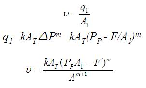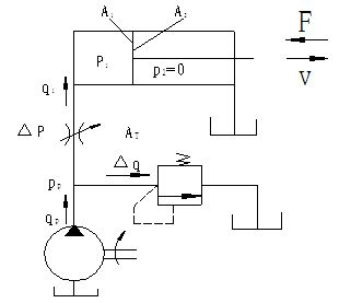 | 第8章 流量阀与节流调速回路 调速原理与方式 节流阀与节流调速回路 调速阀 ●调速原理与方式 对液压缸 v=q/A 对液压马达 n=q/vm 调速方法: 节流调速回路:用定量泵供油,采用流量控制阀调节进入执行元件的流量实现调速。 容积调速回路:改变变量泵的排量或改变变量马达的排量实现调速。 容积节流调速回路:用自动改变排量的变量泵与流量控制阀联合调速。 ●节流阀与节流调速回路 流量控制阀:控制流体流量的阀 (节流阀与调速阀)。 工作原理:利用改变阀口通流截面积的方法来控制流体流量,从而控制执行元件的运动速度。 ▲节流阀的节流特性 ▲节流口的主要形式 ▲节流阀的结构与常见故障 ▲节流调速回路 节流阀的节流特性 式中 AT:节流口通流截面积; ΔP:节流口前后的压差; K:由节流口的形式、尺寸和流体性质决定的系数;薄壁小孔K= Cd:流量系数,一般取0.62~0.63 影响流量q变化因素: 负载变化的影响; 温度变化的影响; 节流口形状的影响,最小稳定流量:0.05L/min; 结论: 薄壁小孔好。 节流口的主要形式 ![]() 节流阀的结构与常见故障 ![]() 适用于负载和温度变化不大,或速度稳定性要求较低的液压系统. 防止节流阀故障的措施. 压差DP=0.2~0.3Mpa. 节流调速回路 节流调速:用节流阀实现流量调节的方法. 节流调速回路由定量泵、溢流阀、节流阀与执行元件组成,按节流阀在油路中安装位置不同,可分为: 进油节流调速回路; 回油节流调速回路; 旁油路节流调速回路; ●节流调速的原理 节流元件用来调节流量是有条件的:即要求有一个接受节流元件压力信号的环节(与之并联的溢流阀或恒压变量泵). 进油节流调速回路(定压式) 速度负载特性:在回路中调速元件的调定值不变的情况下,负载变化所引起速度变化的性能. ![]() 液压缸的运动速度与节流阀通流面积成正比. 当节流阀通流面积一定时,液压缸的运动速度随着负载增加而减小. 进油节流调速回路 速度刚度kv: ![]() 物理意义:引起单位速度变化时负载力的变化量。它是速度负载特性曲线上某点处斜率的倒数. 当节流阀通流面积AT不变时,负载越小,速度刚度越大,曲线越平缓,α角越小; 负载一定时,节流阀通流面积越小,则速度刚度越大。 这种调速回路的速度稳定性,在低速轻载情况下,比高速重载时好。 增大液压缸有效面积和提高液压泵供油压力,可提高速度刚度。 最大承载能力: ![]() 该回路功率损失由两部分组成,即溢流损失和节流损失。 回路的效率ηc: ![]() 进油节流调速回路适用于轻载、低速、负载变化不大和对速度稳定性要求不高的小功率液压系统。 |