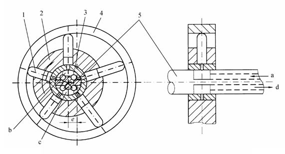 1—柱塞 2—缸体 3—衬套 4—定子 5—配油轴