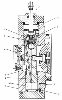 1—阀芯2—铰链3—斜盘4—活塞5—壳体